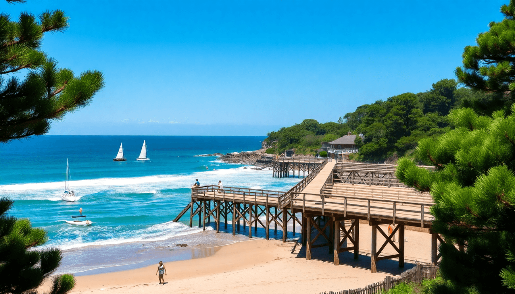 - Plage sud : vagues idéales pour le surf, ambiance sportive